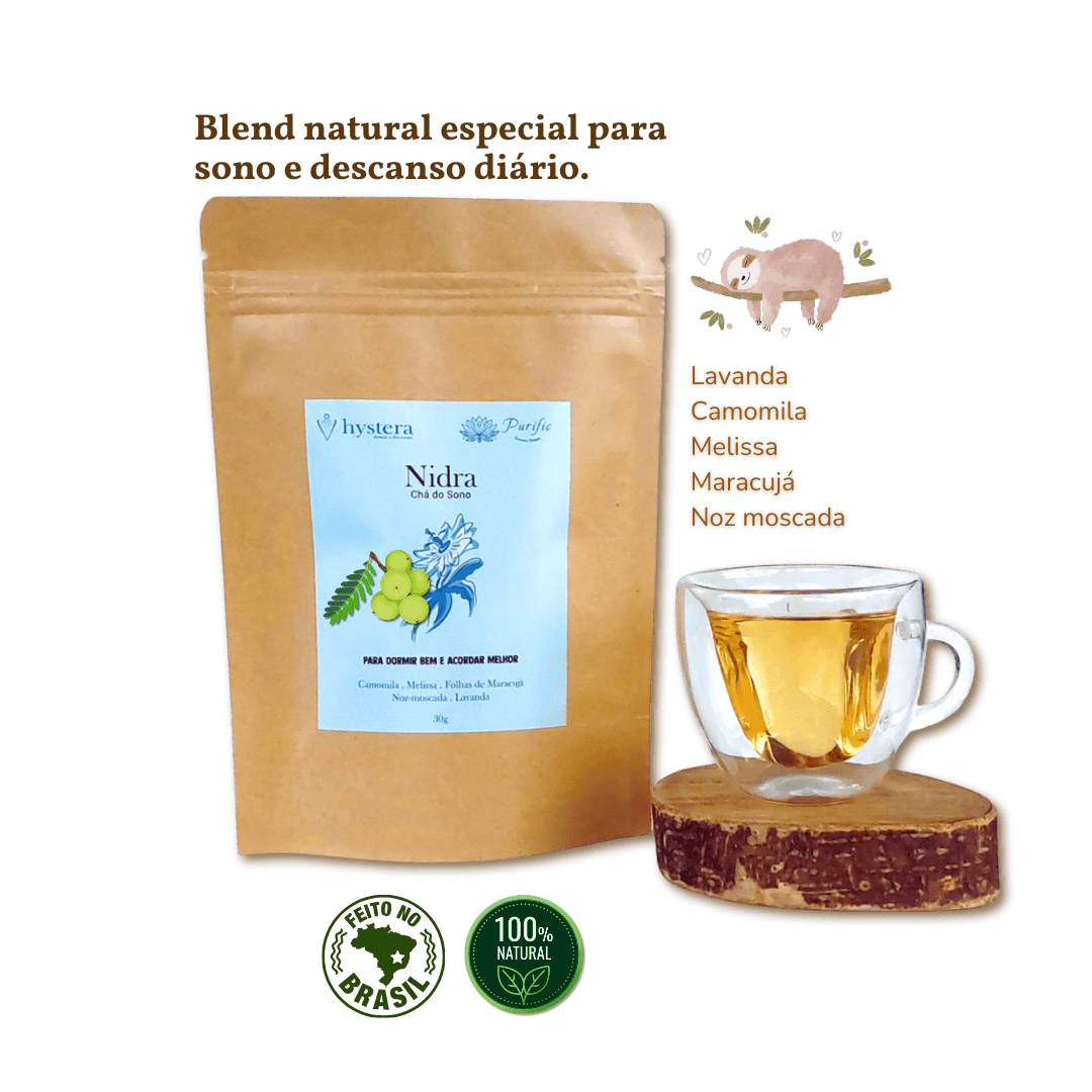 Blend calmante com camomila, melissa, lavanda, folhas de maracujá e um toque de noz-moscada. Ideal para desacelerar no fim do dia e induzir ao sono de forma natural.